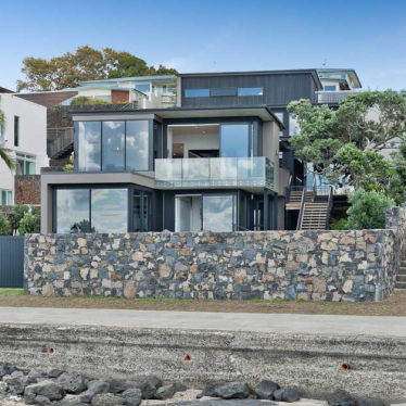 The brief was to design a home which could be integrated into a waterfront property which has a 15m fall from the road front to the rear. The brief also required to optimise the sea views and retain the existing Pohutukawa as per the Resource Consent conditions.